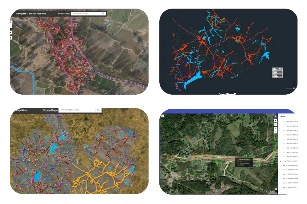 With drones, we provide swift, accurate water pipeline mapping. Equipped with high-resolution cameras and LiDAR, drones capture detailed aerial imagery and topographic data, aiding in issue identification and maintenance optimization. Access to remote terrain enables thorough inspections without disruption. Integrating our services enhances efficiency, reduces costs, and improves water system management.